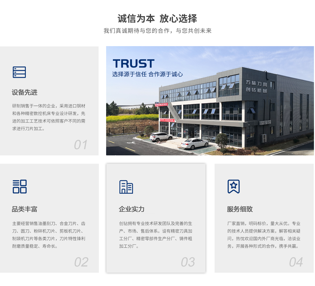 馬鞍山創(chuàng)鉆機械科技有限公司 INTRODUCTION 馬鞍山市創(chuàng)鉆機械科技有限公司(創(chuàng)鉆機械)坐落于鋼鐵之城-安徽馬鞍山,公司擁有專業(yè)的技術研發(fā)團隊及完善的生產(chǎn)、市場、售后體系。公司設有精密刀具加工分廠、精密零部件生產(chǎn)分廠、鑄件粗加工分廠,...